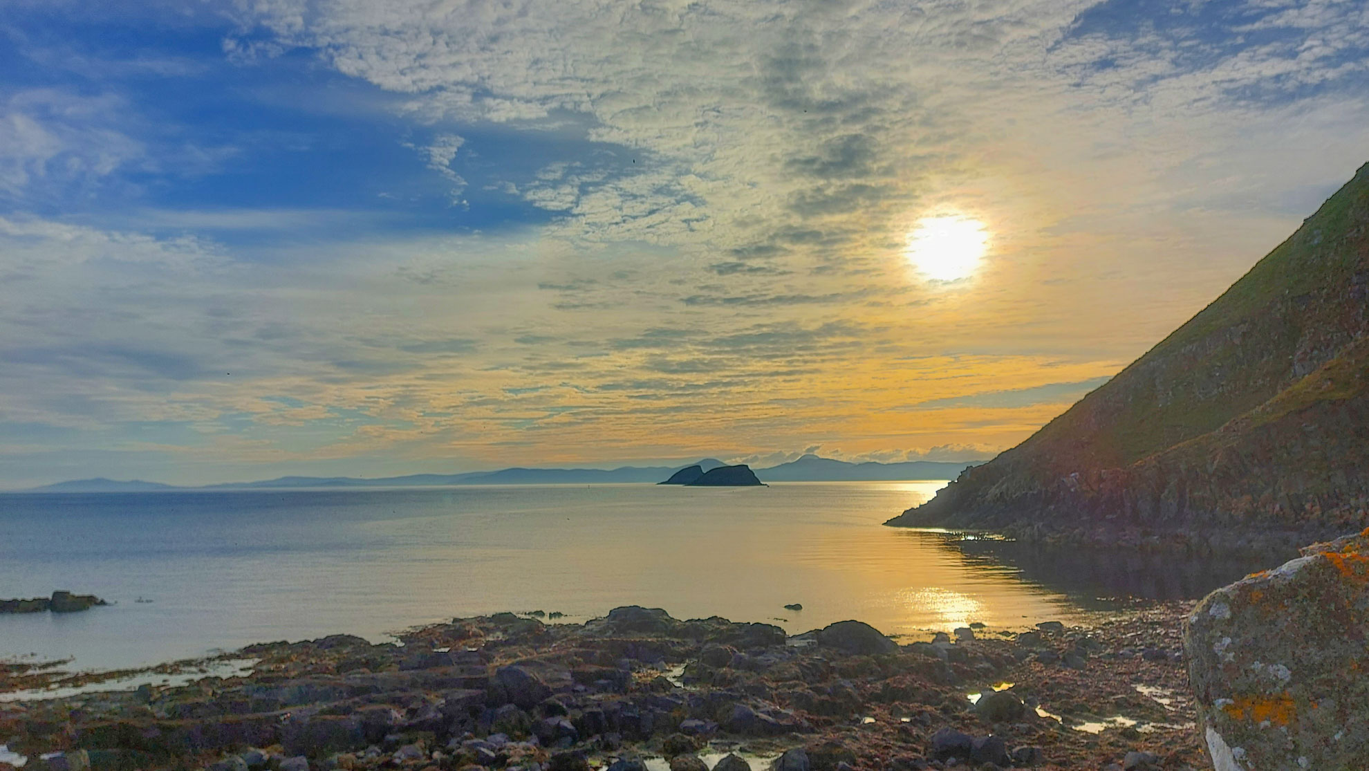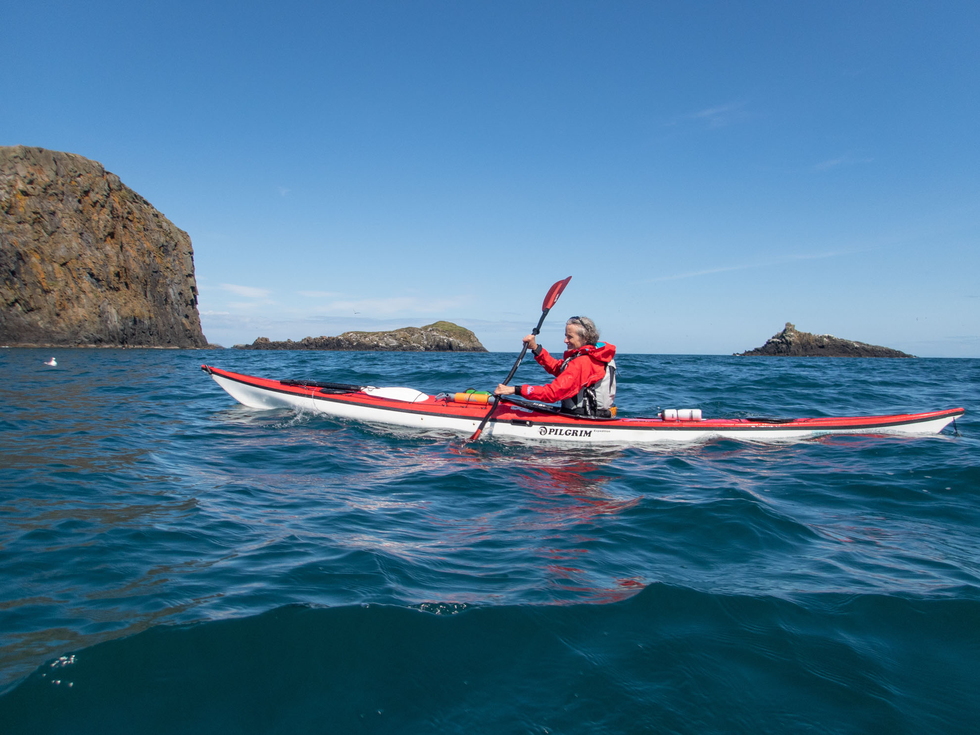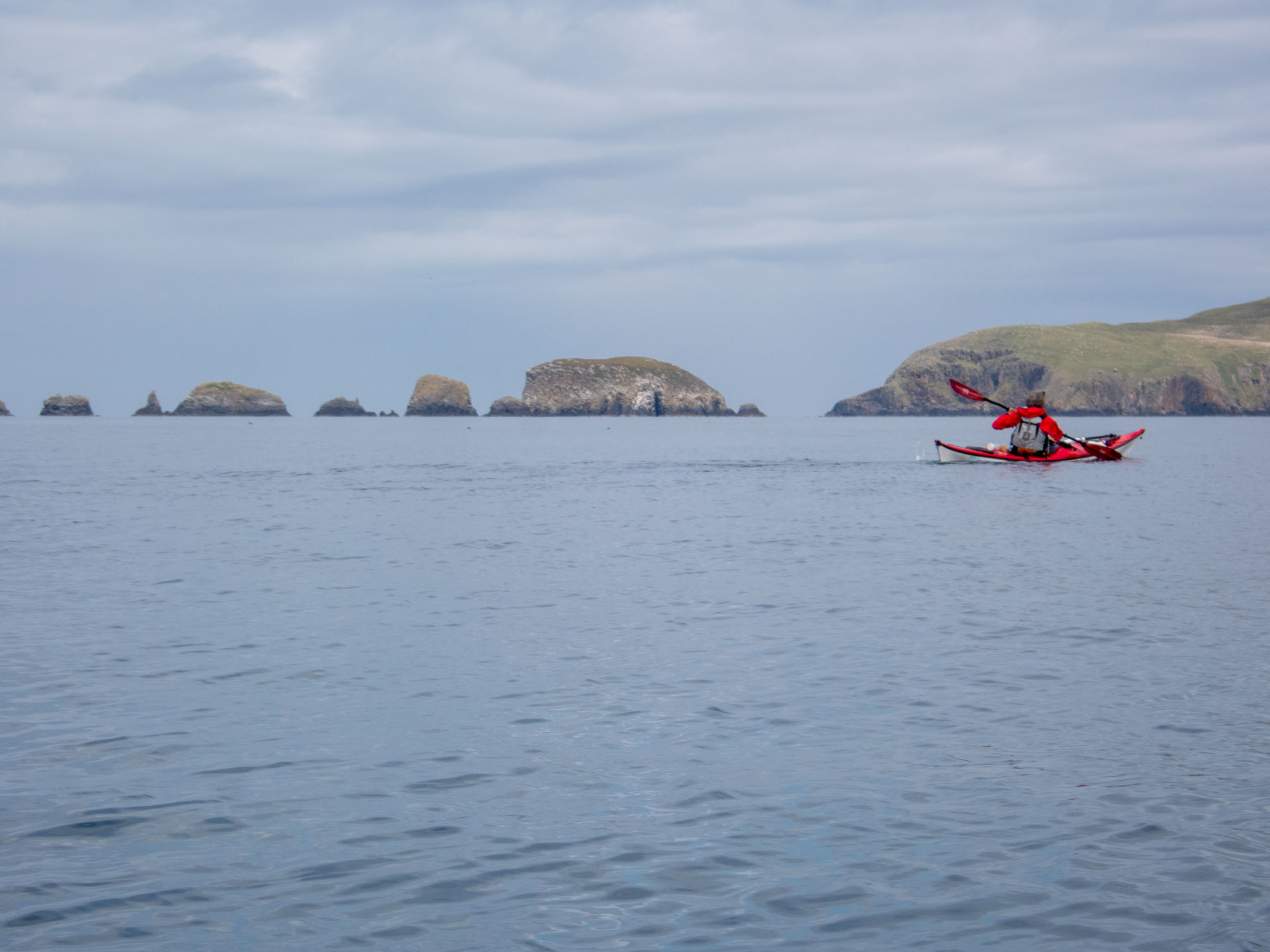 Passing the Galtachan chain of sea stacks on the final leg of the crossing