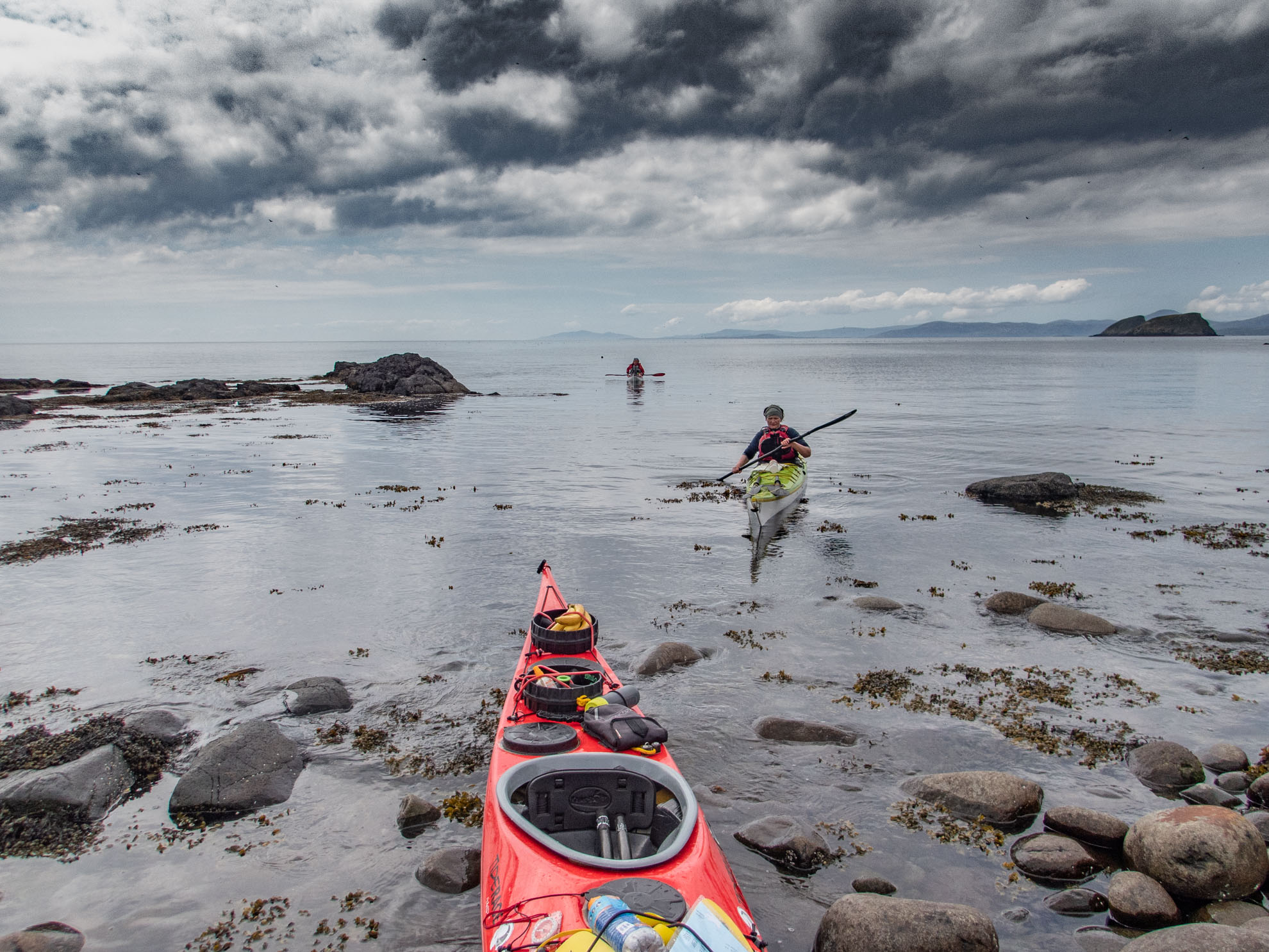 Packing the kayaks on the second morning, ready for the tide from the north end of Fladda-chuain to take us northeast towards The Shiants