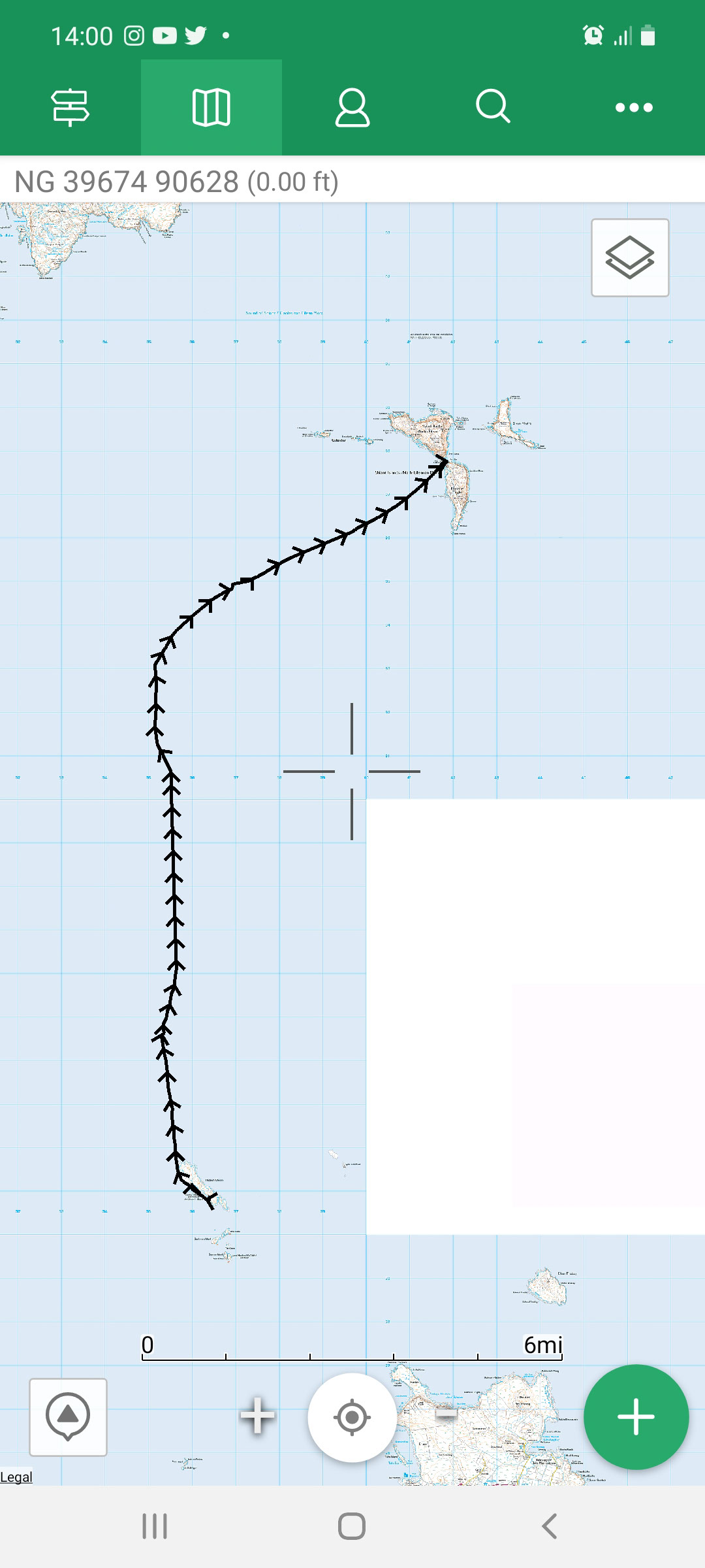 Route trace for day 2. Our initial course was due north, in reality we paddled facing north north west until we reached a point where we could turn north east and go with the flow to The Shiants, a route calculated to avoid the inconvenience of shooting past the islands!