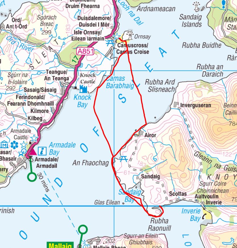 With the wind coming up the Sound we made our transit to the Skye shore and then turned right for a push north, running with the wind and waves to the coast of Sleat.